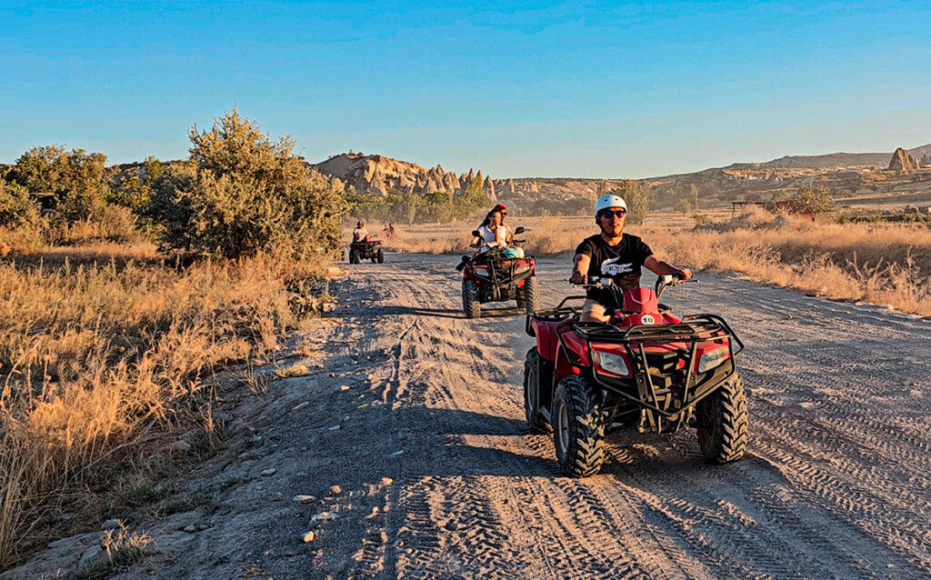 Among the atv tours offered in the Cappadocia region, the most popular and highly recommended tour is the sunset atv adventures tour. You can choose between a 1 hour or 2 hour tour, but those who want to fully enjoy the experience and witness the sunset moment by moment should definitely opt for the 2 hour sunset tour. Before starting the tour, don’t forget to bring your mask to protect against dust and your camera to capture the views.